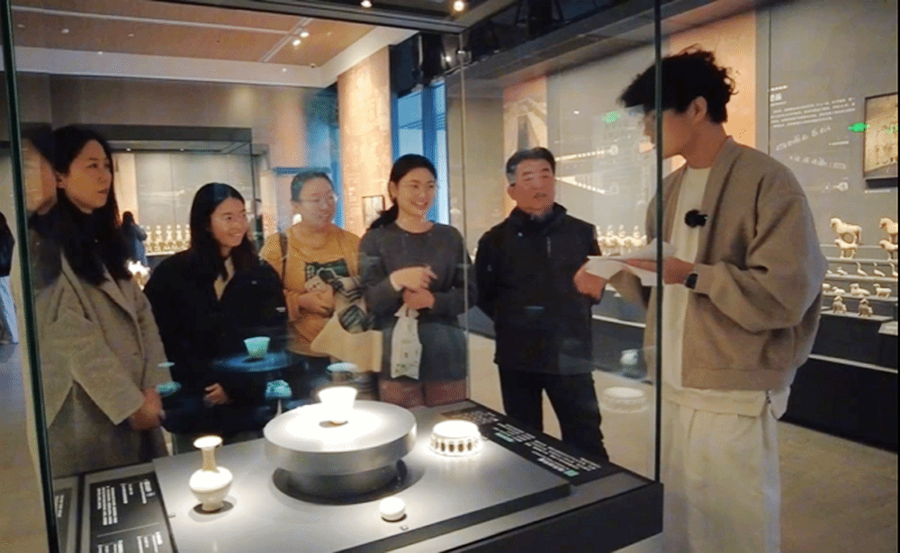 在庄重典雅的展厅内,学生们化身文化使者,用流利的中英双语讲解了所负责的展陈内容。他们用精准的翻译、生动的叙述和得体的仪态,为沉睡的文物赋予了跨越语言的生命力,赢得了在场观众的好评。