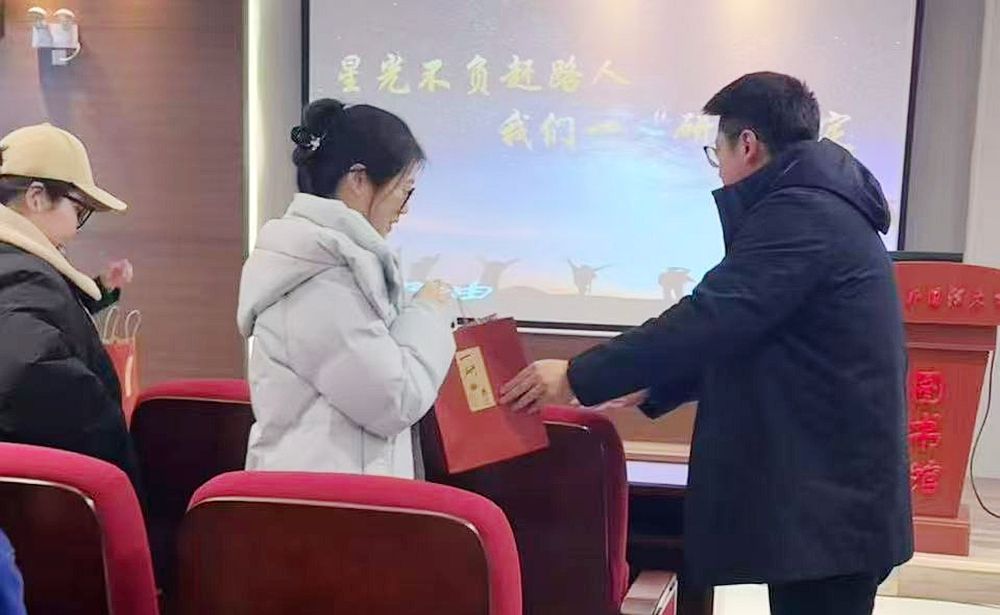 随后,学院领导老师们将精心准备的“考研加油包”逐一送到学生手中。礼包里装有考试必备的文具、驱寒保暖的暖宝宝,还贴心准备了寓意“旺上加旺”的旺仔牛奶和象征“心想事成”的橙子,承载着学院对学生的深切关怀与美好祝愿,希望这份温暖能驱散冬日的寒意,让大家带着满满的信心奔赴考场。