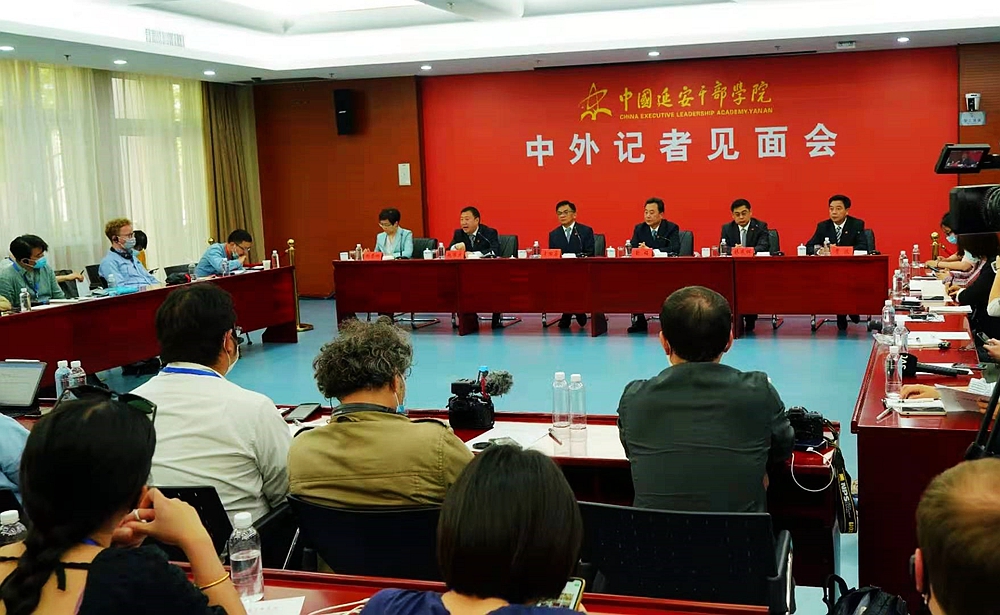 10日,国新办在中国延安干部学院举行中外记者见面会,两位教师为见面会提供了高质量的同传翻译服务。11日,记者们参观访问中国延安干部学院,与该院负责人座谈,观摩该院枣园教学点现场教学并采访教师学员,深入了解中国共产党的干部教育培训工作,两位教师负责活动的资料翻译和交互传译等工作。