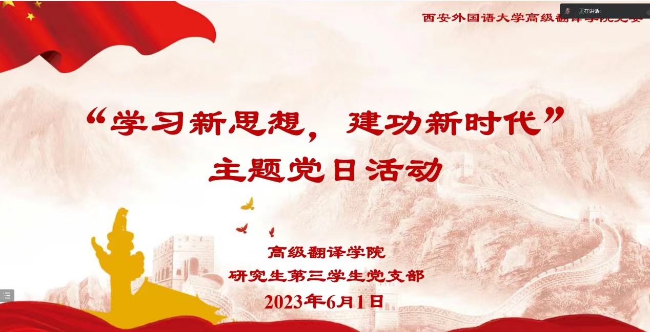 分党委研究生第三学生党支部于2023年6月1日举办“学习新思想 建功新时代”主题党日活动。支部书记王欢主持活动,全体党员参加活动。