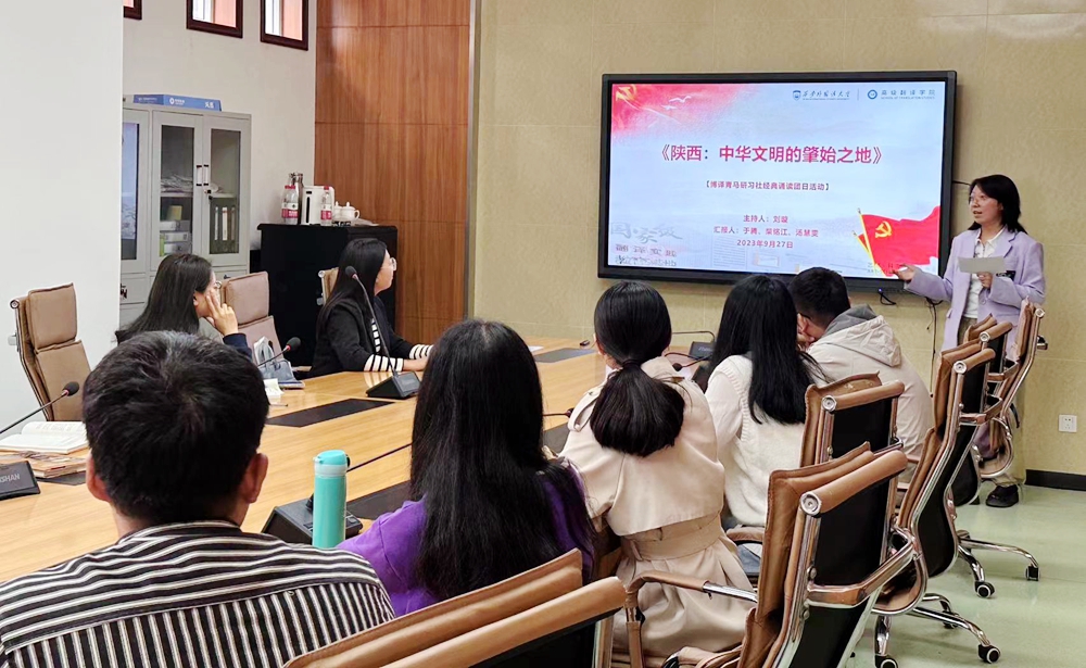 博译青马研习社举办《陕西:中华文明的肇始之地》双语诵读团日活动。社长刘璇主持活动,全体社员及学生党支部代表参加活动。