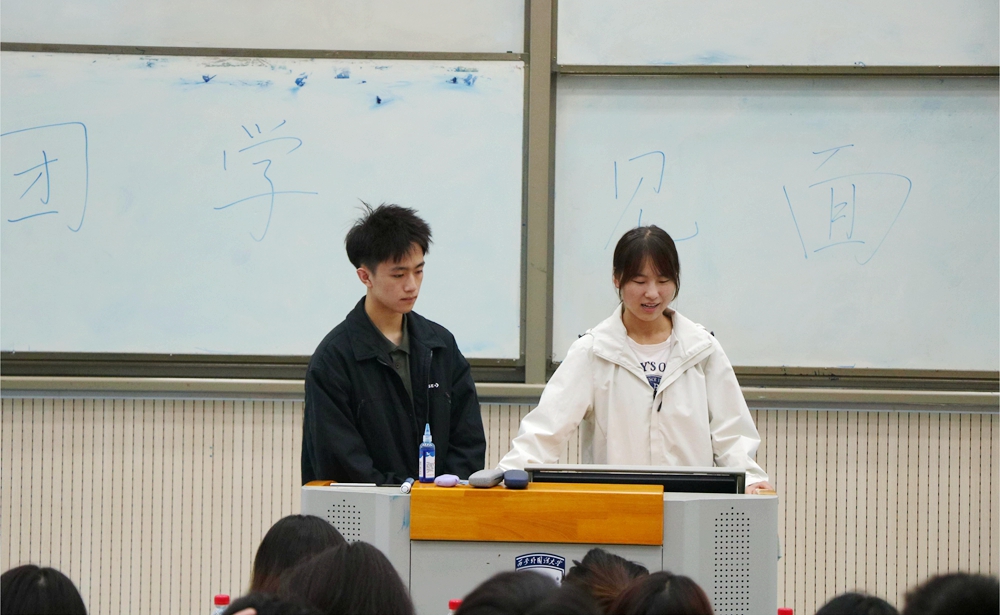 程强老师在总结发言中对新成员提出四点建议:一是希望大家扩展朋友圈,广结益友,虚心求教;二是提升语言沟通能力,做到高效沟通;三是提升解决问题的能力,攻坚克难,学会正确看待问题、冷静理性处理各项事务;四是提升软件办公能力,提升工作效率,为未来走上工作岗位奠定坚实基础。