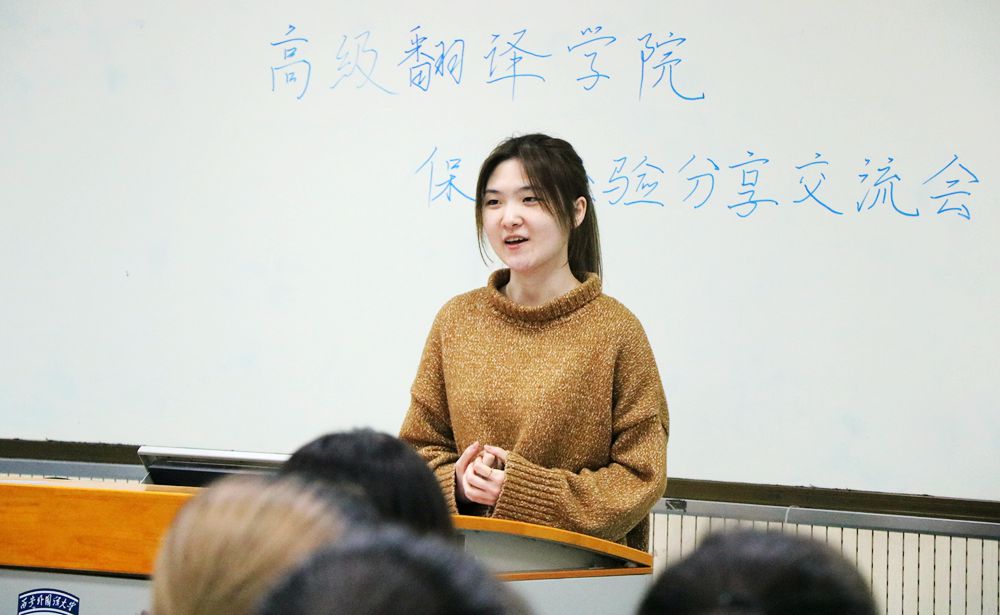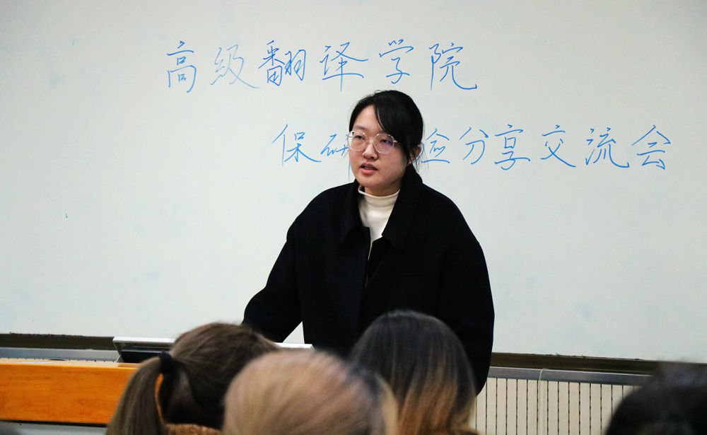 许涵凝梳理了申请保研机会的时间线和流程,强调了专业成绩的重要性,鼓励大家多多投报夏令营,并建议多参加竞赛。她表示,无论是口译专业或笔译专业,都很重视听力及口语能力,建议大家平时多多积累、练好基本功。