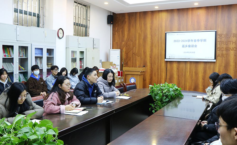 2024年2月28日,米兰体育官网 召开春季学期返乡座谈会。辅导员程强、王欢、邓婕、王志娜及本科生、研究生各班班长参加。