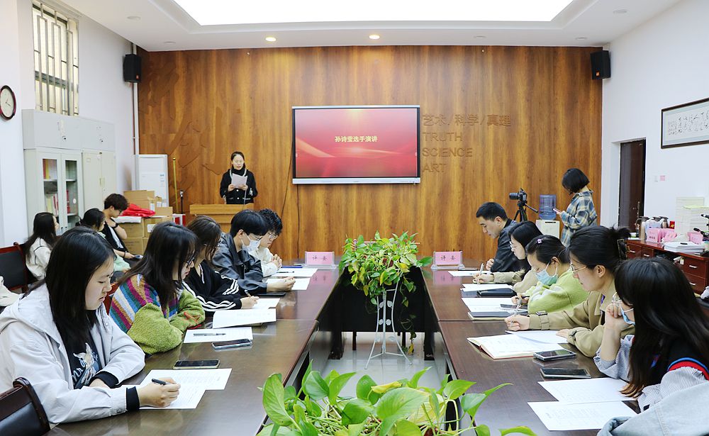 举办“爱我国防”大学生演讲比赛。2023级、2022级、2021级本科生参加比赛。辅导员程强、王欢、张夏蕊、邓婕及分团委学生会负责人担任评委。