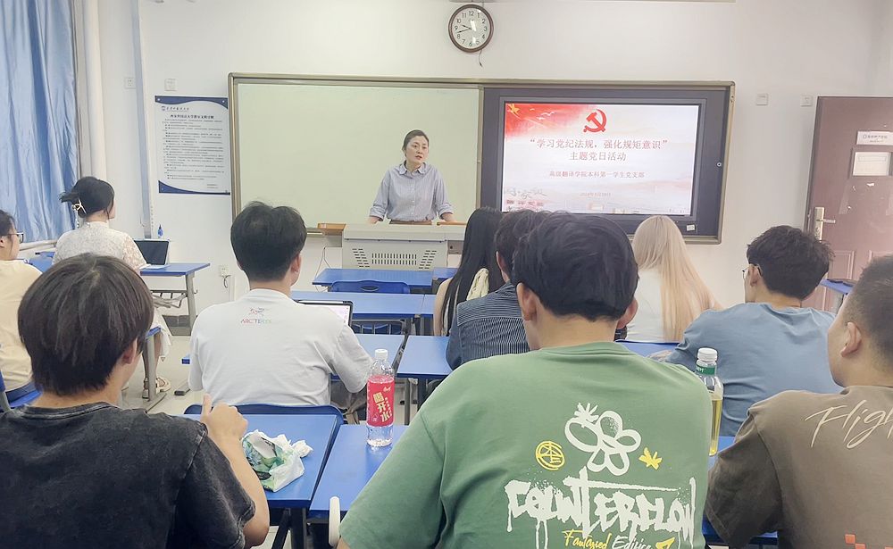 分党委本科生第一学生党支部开展主题为“学习党纪法规,强化规矩意识”的党日活动。支部全体党员参加,支部副书记席梦佳主持,院党委书记樊花应邀参会指导。