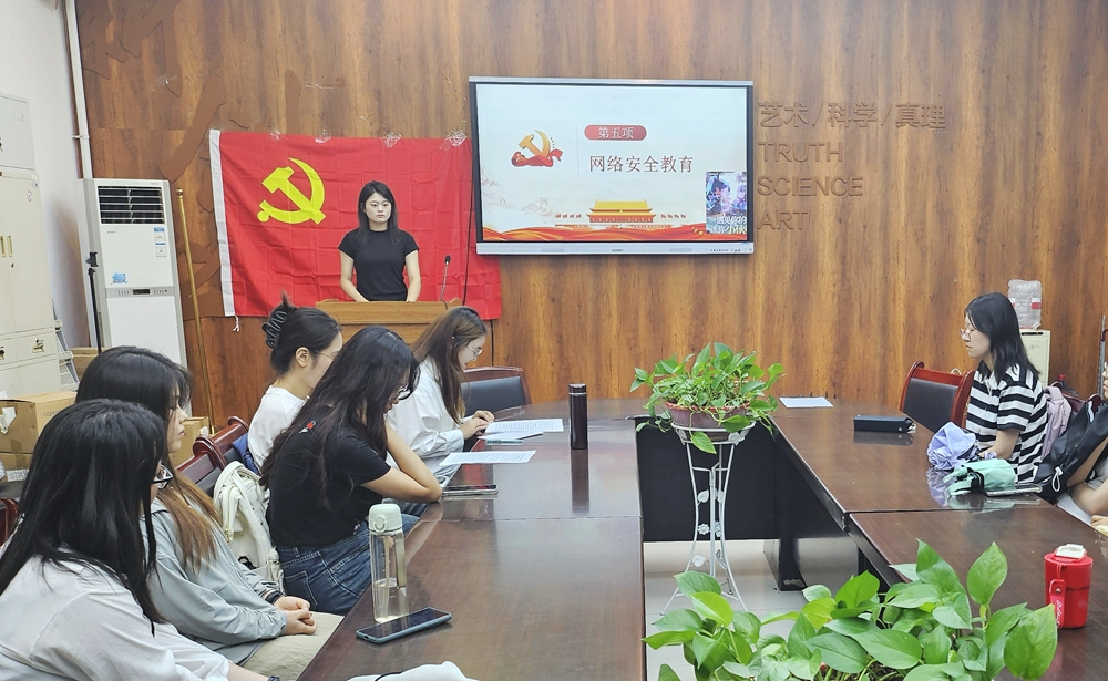 分党委研究生第二学生党支部召开党支部换届选举大会暨网络安全主题教育。支部全体党员参加会议,2024级研究生辅导员苗朔菡主持会议。