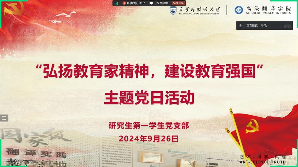 分党委研究生第一学生党支部开展“弘扬教育家精神,建设教育强国”主题党日活动。支部全体成员参加,支部副书记彭小玉主持。