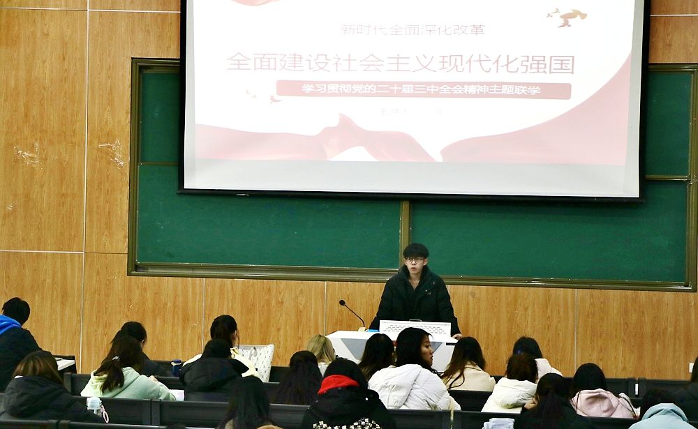 分团委学生会举办学习贯彻党的二十届三中全会精神主题联学会。学生会执行主席王震主持。