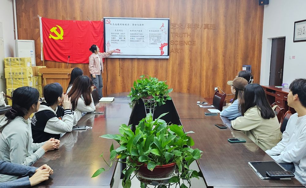 杨帆同志讲述了抗战英雄杨靖宇的英勇事迹,通过回顾他在艰苦条件下以树皮充饥、在日军侵略者面前视死如归的经历,带领大家深刻领悟抗战精神的内涵,激励大家在新时代坚定理想信念,练就过硬本领,争做让党放心、强国兴邦的先锋力量。刘唯嘉同志在分享感悟时表示,作为学生党员要加强国防意识,在信息科技洪流中提高明辨是非的能力,警惕文化渗透,奉献青年的热忱与行动。