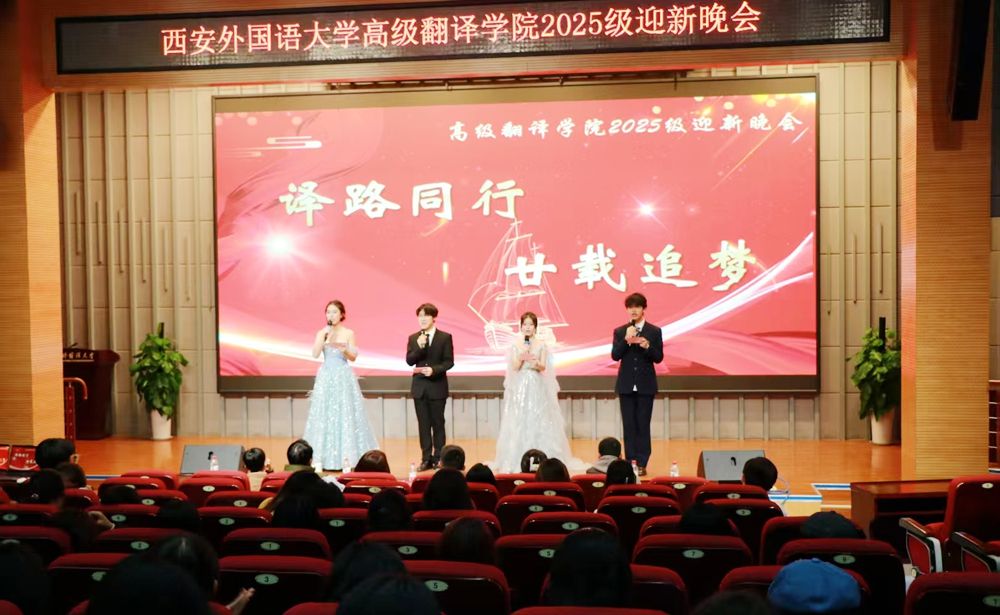 在教学楼报告厅举办主题为“译路同行,廿载同行”的2025级迎新晚会,为新生开启大学生涯的温暖序章。米兰体育