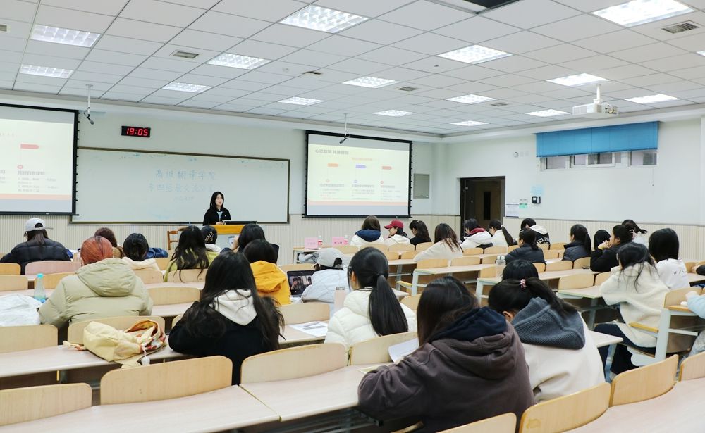 分团委学生会学创部举办专四经验交流分享会。2023级本科生丁艺洋、陈飞扬、王璐、谢汶芮做了分享,2024级、2025级本科生参加。