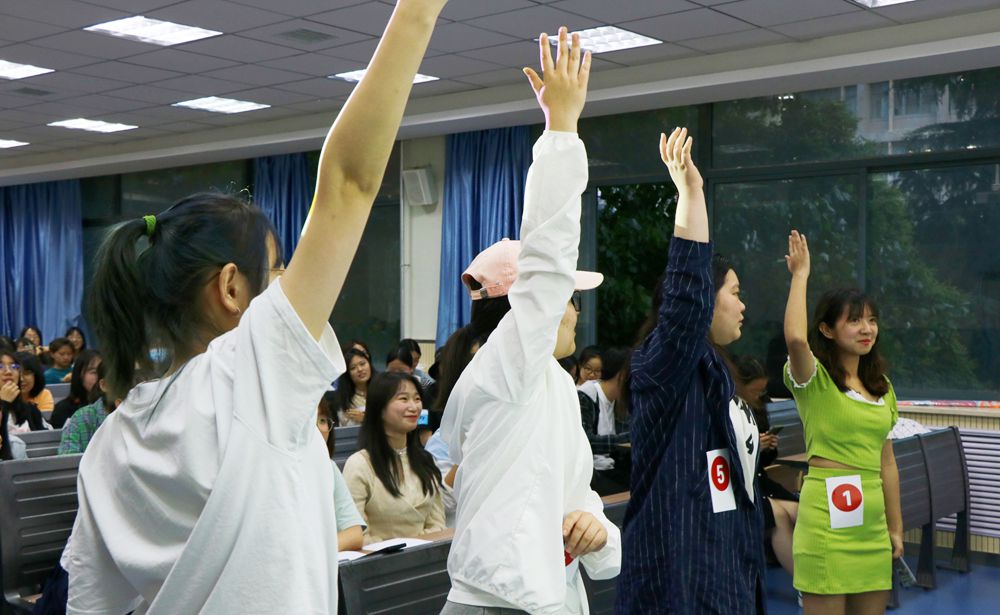 比赛设歌词接龙、歌词抢答“年代秀”、猜歌名等三个环节。选手们以游戏的方式进行音乐交流,小组内一人抢答、共同作答,既增进了宿舍成员之间的情感,又提高了大家的团队协作能力。活动现场气氛活跃,全场百人合唱更是余音绕梁,洋洋盈耳。