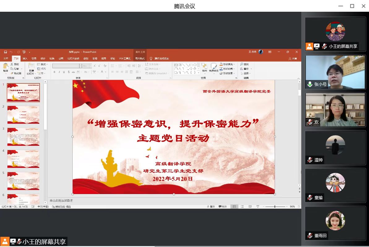 党委保卫(保密)委员张小号副教授、党支部书记王欢和支部全体党员参加活动,支部组织委员王志伟主持活动。
