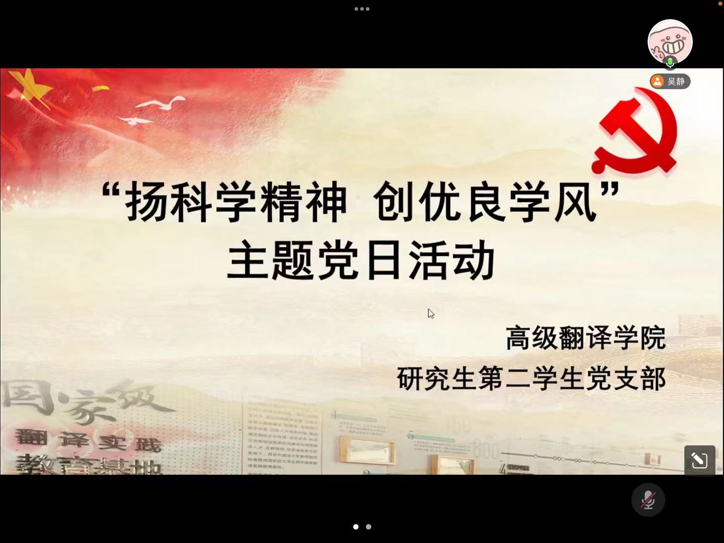 分党委研究生第二学生党支部开展“扬科学精神,创优良学风”主题党日活动。支部全体党员参加活动,支部书记吴静主持活动。