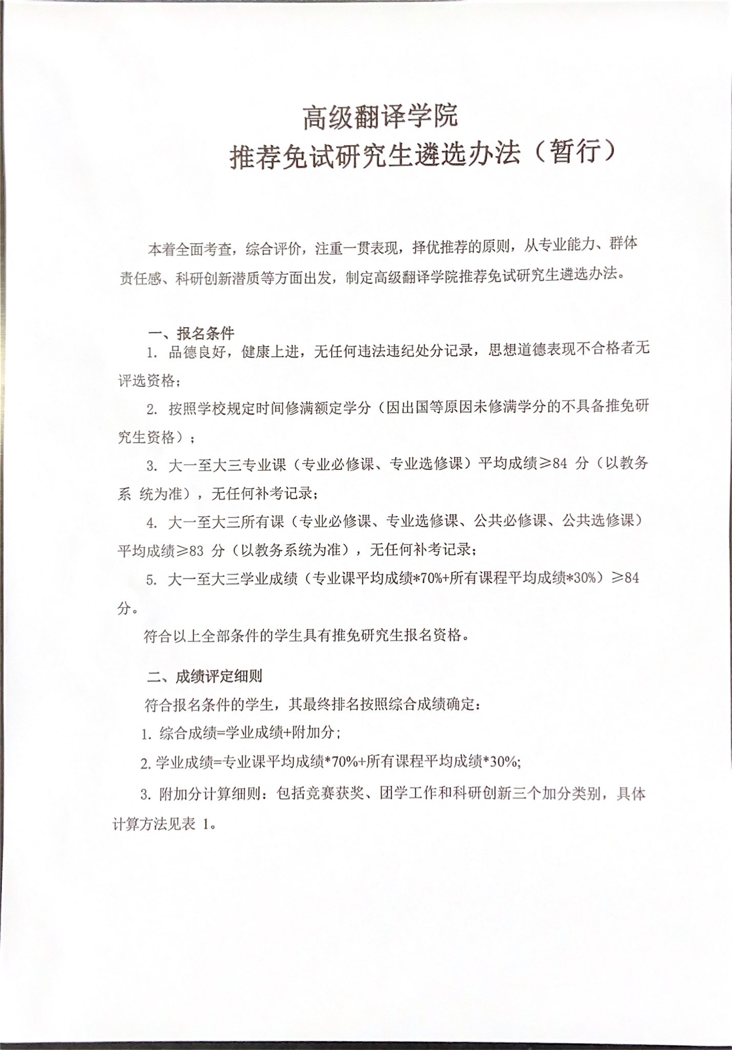米兰体育官网 推荐免试研究生遴选办法(暂行)
